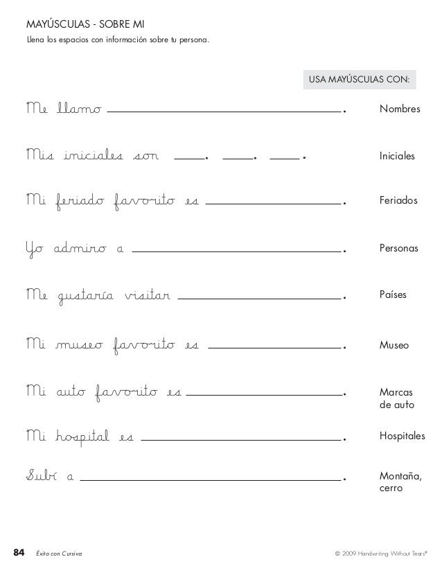 Guias De Lectoescritura Nombres Con Letra Cursiva Mayuscula